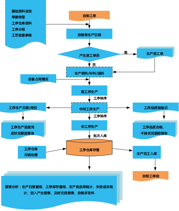 制造單管理:對生成部門下達制造任務(wù),產(chǎn)生領(lǐng)料清單,并對生成過程的領(lǐng)料、退料、補料進行控制和跟蹤。