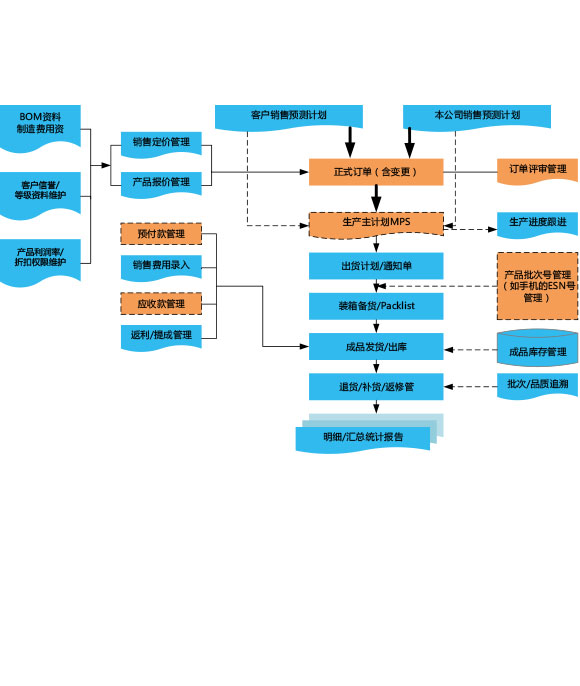 訂單管理:包括訂單的維護、評審、出貨、退貨、對賬和開票等。可全程跟蹤訂單的執(zhí)行狀況,對訂單物料的采購、生產(chǎn)過程、出貨安排等了如指掌。888