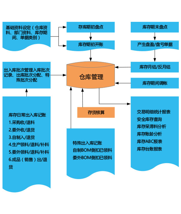 庫存管理主要功能包括倉庫日常的出入庫管理,如采購入庫、制造入庫、委外入庫、生產(chǎn)領(lǐng)料、銷售出貨等。庫存期初開帳、期間調(diào)帳、期未盤點并自動產(chǎn)生盤盈、盤虧單,庫存月結(jié)、反月結(jié)處理。對材料、半成品、成品可按設(shè)定的出入庫方式實行嚴格的批次管理、序列號管理。統(tǒng)還提供詳細的出入庫交易報表查詢、庫存呆滯料分析、庫存帳齡分析、庫存ABC報表等。