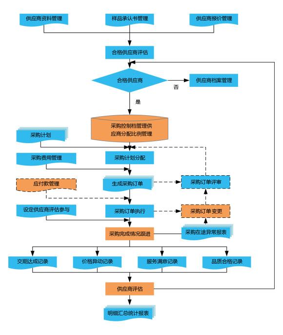采購單管理:系統(tǒng)可根據(jù)采購計劃自動生成采購訂單,可人工選擇供應(yīng)商,也可以由系統(tǒng)根據(jù)供應(yīng)商評估結(jié)果自動分配供應(yīng)商,并實時跟蹤采購訂單完